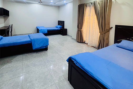 Spacious 3-bed sharing available at Nukhba Hostel! Secure, fully furnished rooms with Wi-Fi, AC, housekeeping—perfect for students and working women.